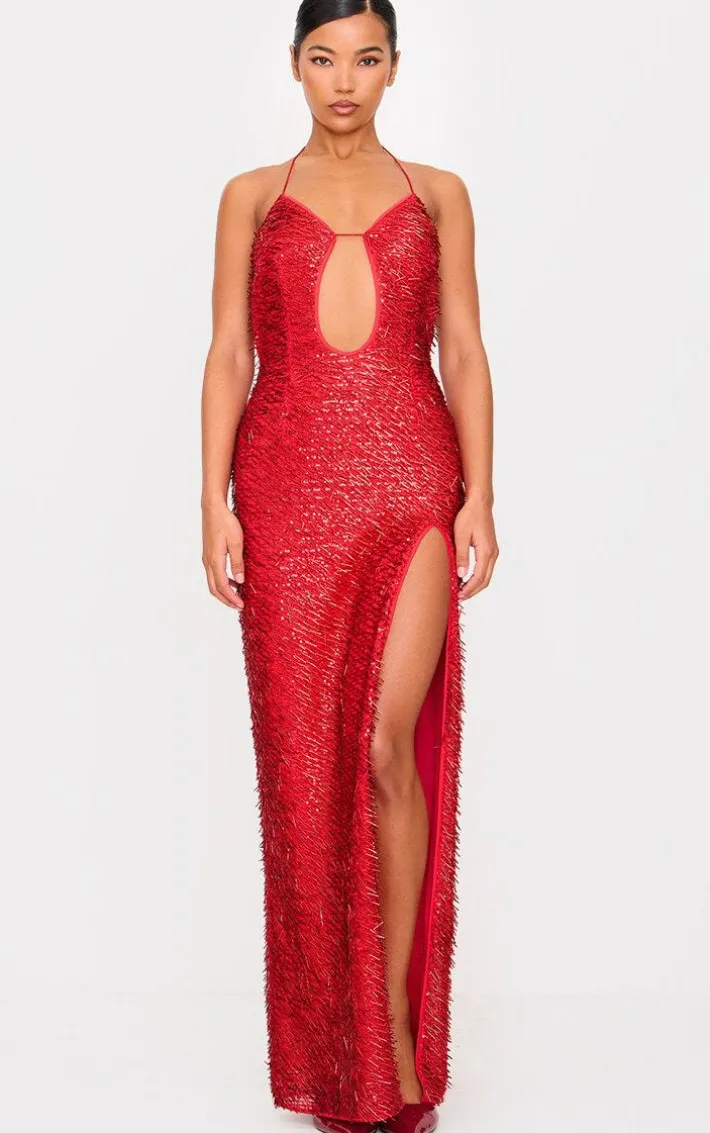 This red sequin cut out maxi dress is a must have for those important occasions you have pencilled in your diary. Brought to you in a red sequin material with a cut out design and a maxi length, you won’t blend in. Give them something to talk about by pairing with some heels and your fave accessories, it’s a yes from us.