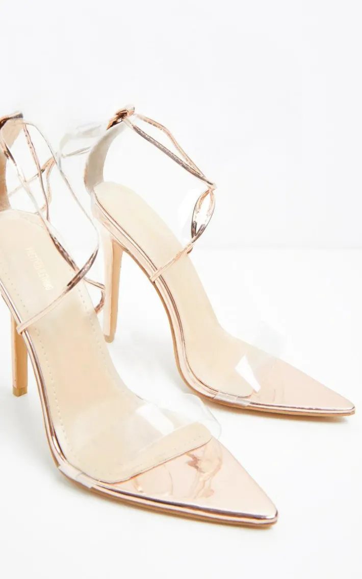 Add some luxe to your shoe-drobe with these heels. Featuring a clear toe strap with a rose gold wrap-around tie fastening and pointed toe, team these with any weekend worthy look.