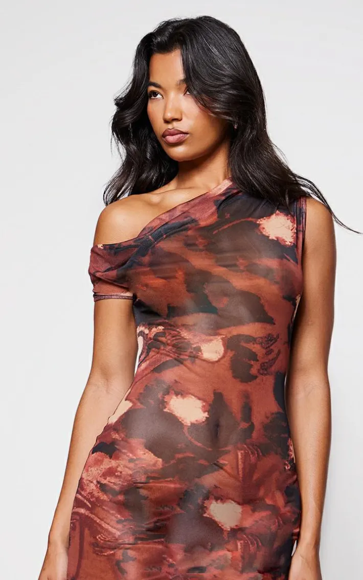 This rust floral abstract printed mesh cowl neck maxi dress will turn heads for all the right reasons. Brought to you in a seasonal rust hue, with a luxe floral abstract printed design, mesh material and asymmetric neck detail, we know you’ll be reaching for this for those weekend plans. Style with a pair of heels and minimal accessories to complete the look.