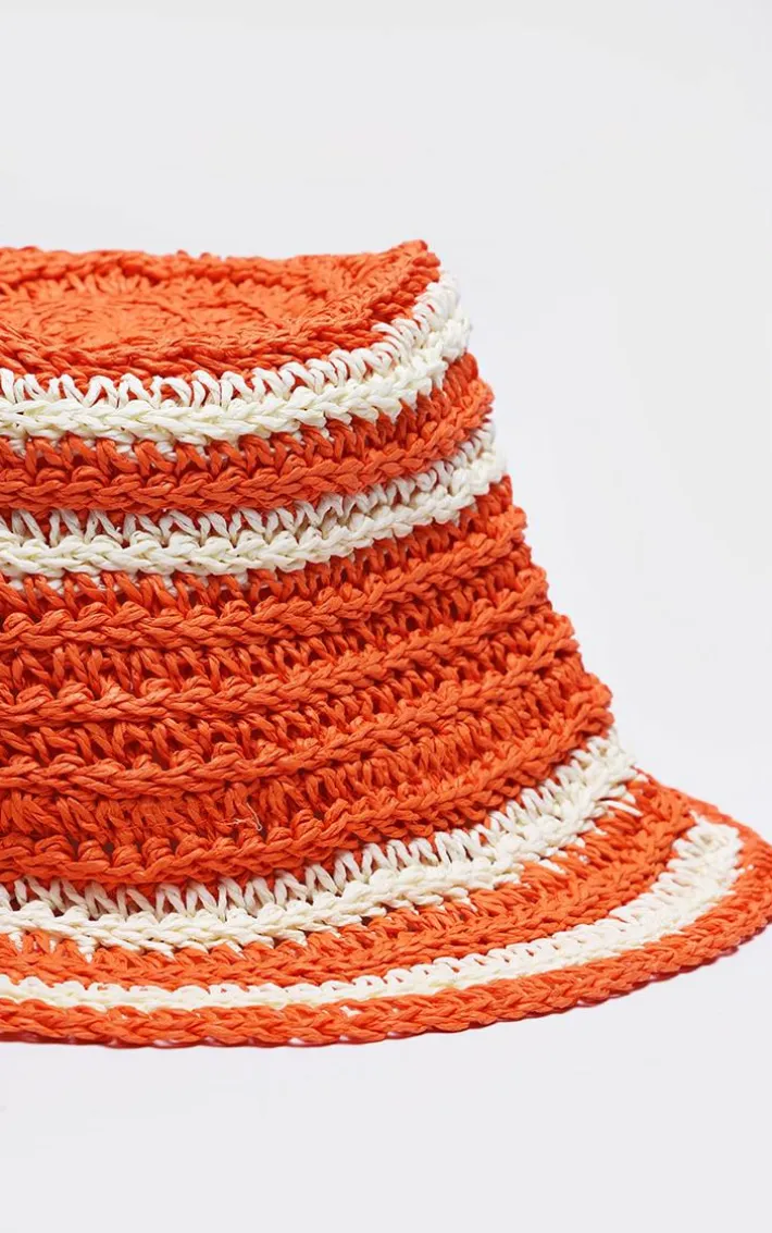 When your outfit of the day is in need of a little something extra, look no further than this rust raffia stripe bucket hat. Brought to you in a rust hue raffia material with a stripe design and a bucket style, how can you resist? Simply add this bucket hat to any look for a statement finishing touch.