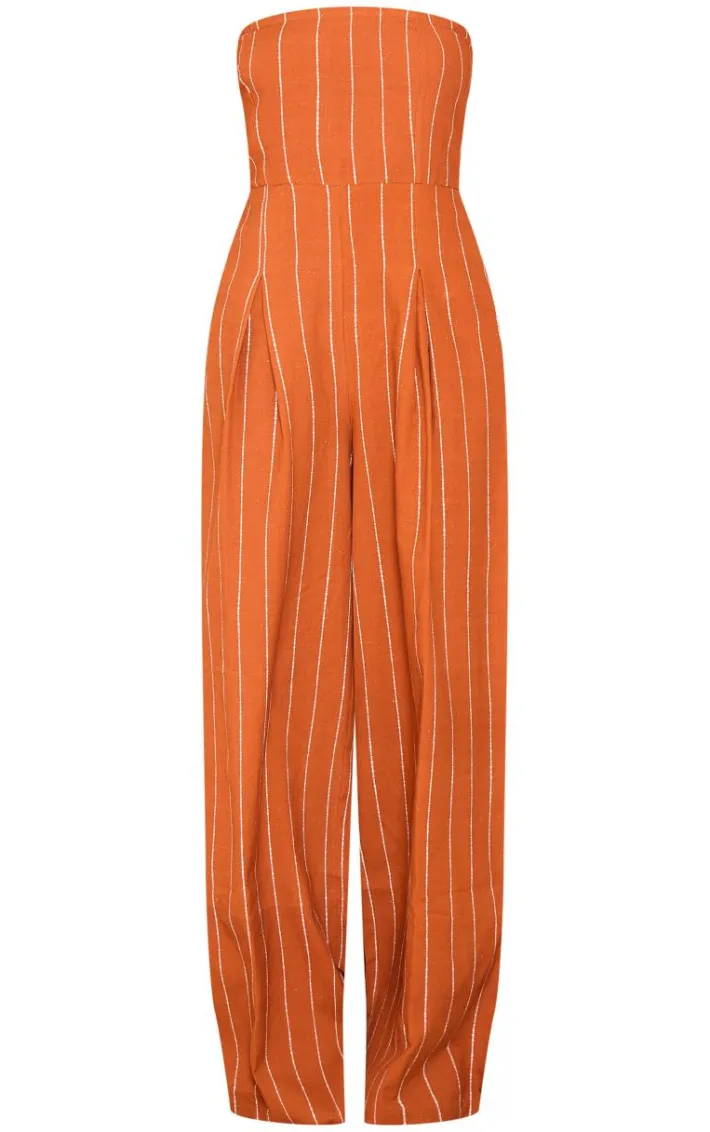 There’s no such thing as too many jumpsuits , and you’re in need of this rust stripe bandeau pocket detail jumpsuit. Brought to you in a rust material with a stripe bandeau design, you’re sure to be the best dressed in this unreal jumpsuit. Its pocket detail bring all the edge. Style this with your fave sandals and sunnies to have all eyes on you.