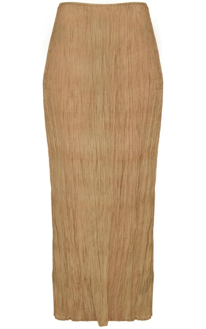 Get ready to have heads turning for all the right reasons with this sage green crinkled sheer woven maxi skirt, we’re obsessed. This skirt features a sage green crinkled sheer woven material with a maxi length and a relaxed fit, you won’t be able to resist this dreamy piece. Pair with the matching top, heels and a mini bag for a look that is perfect for your next date night.