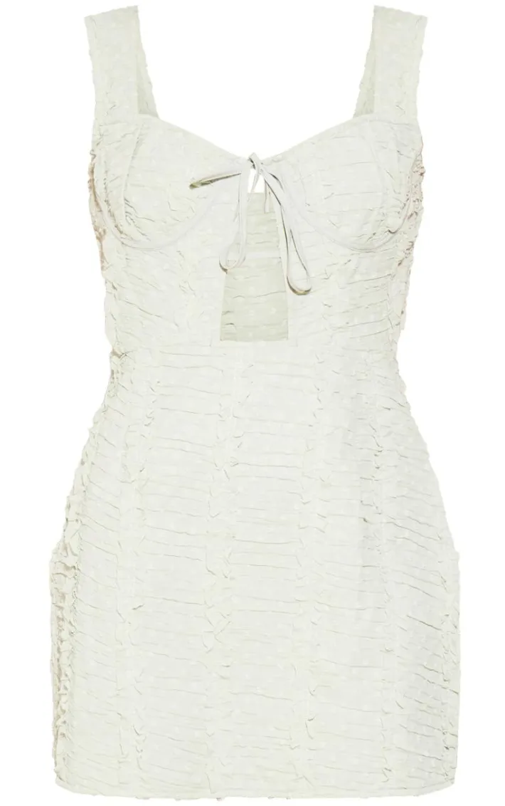 Take your new season wardrobe that extra mile with this sage green dobby textured cut out bodycon dress, we just can’t resist. This dress is brought to you in a sage green dobby textured material with a cut out design and a figure-flattering fit. Style this textured dress with sandals and a mini bag for a look everyone will want.