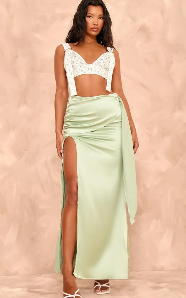 Got a special occasion coming up? Then this sage green heavy satin knot front maxi skirt will solve all your ‘what to wear’ dilemmas. It is made using a sage green heavy satin material with a knot front design and a maxi length, we’re in love. Just add a bralet, strappy heels and your fave accessories for a look that will earn you all the compliments.