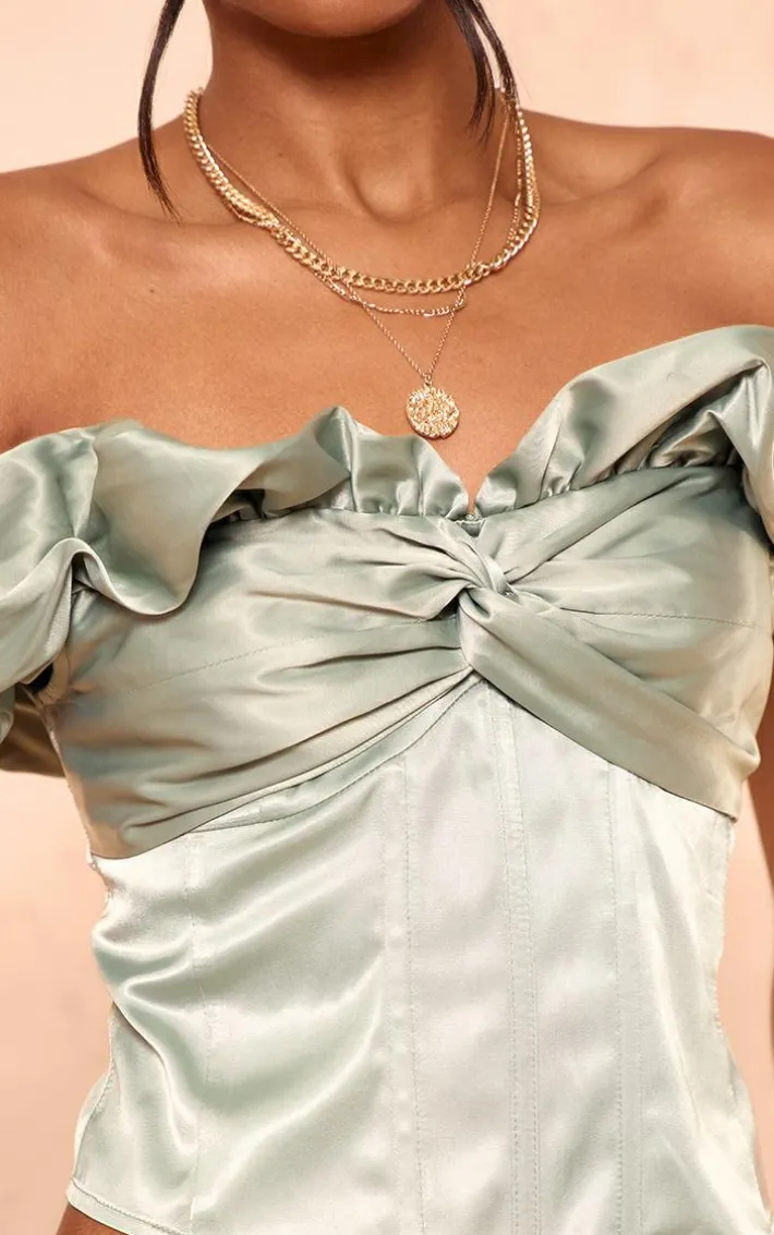 Go for all the luxe vibes this season with this dreamy sage green premium satin ruffle boned corset, we’re in love. Made using a sage green satin material with ruffle detailing and a figure-flattering fit, this corset is here to solve all your ‘what to wear’ dilemmas. Style it with a maxi skirt, heels and gold accessories for a look everyone will be obsessing over.