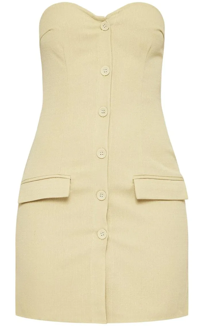 This sage khaki bandeau button pocket detail bodycon dress is sure to take your look that extra mile. Brought to you in a sage khaki material in a bandeau design for a flattering fit you won’t be able to resist. With a button up fastening and a pocket detail, this bodycon dress is a must have in your new season wardrobe. Style with some clear heels and a pair of gold hoops to complete the look.