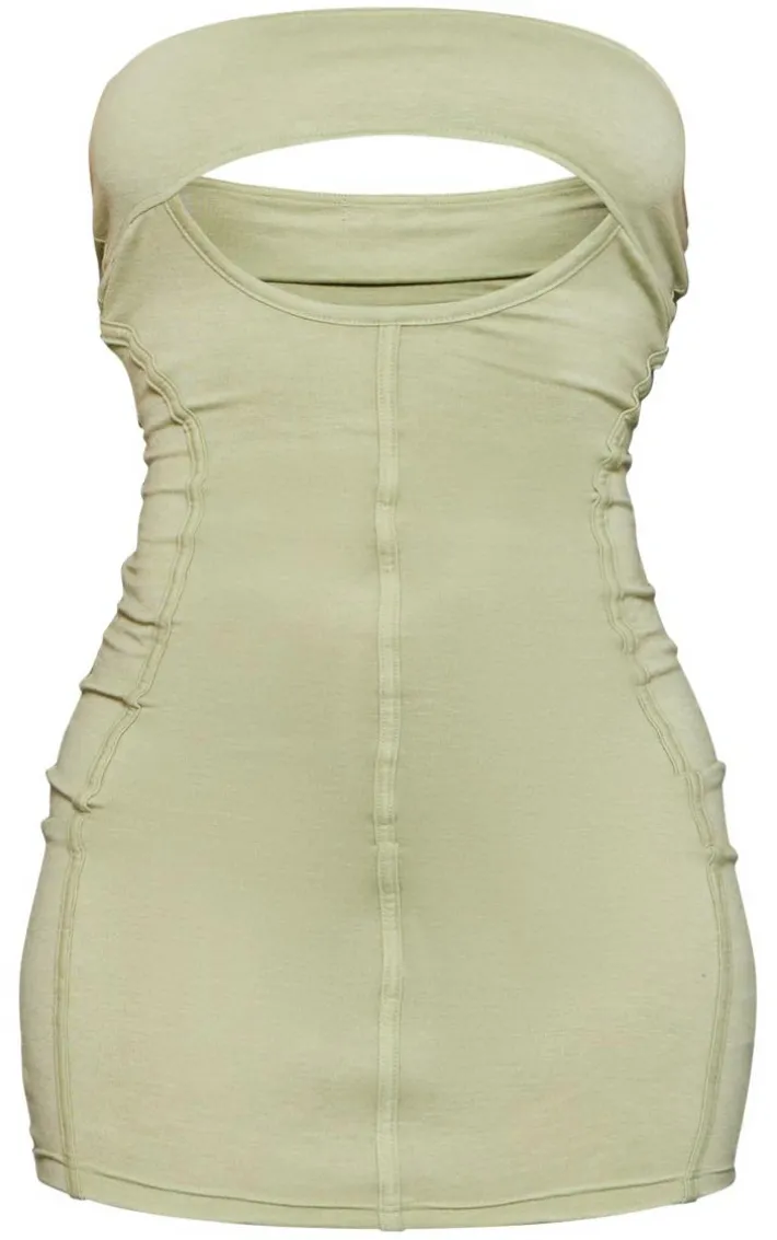 Show off your unreal figure this weekend with this sage khaki binded cut out bandeau bodycon dress. Its sage khaki hue material hugs your curves in all the right places whilst its cut-out detail adds that extra edge to your look. This bodycon dress also features a bandeau neckline which gives you that extra chic touch. Team with a bomber jacket, knee-high boots and everyday accessories for a flawless finish.