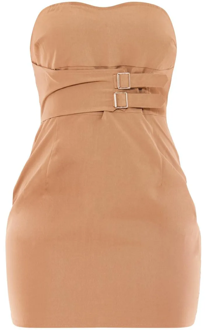 Take the stress out of weekend styling with this sage khaki buckle detail bandeau bodycon dress. Brought to you in a sage khaki hue material with a bandeau neckline and buckle detailing for that extra added edge, what more could you want? Style this bodycon dress with clear strap heels and gold accessories for a look that is sure to steal the stares for all the right reasons.