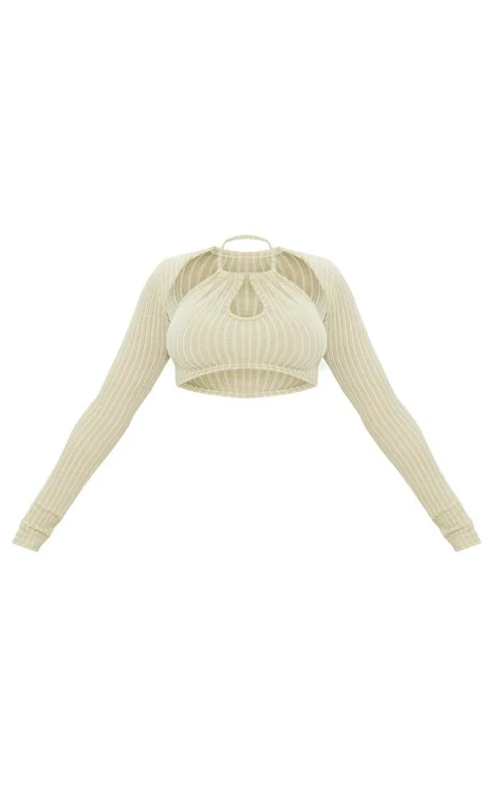 Add some of this season’s must-have hue to your wardrobe with this sage khaki textured rib halterneck keyhole crop top with shrug, it is the perfect piece to take your look from day to night. It features a sage khaki textured rib material with a matching shrug and a halterneck style, we’re obsessed. Team this crop top with the matching shorts, knee high heeled boots and hoop earrings for a look that will bring all the attitude.