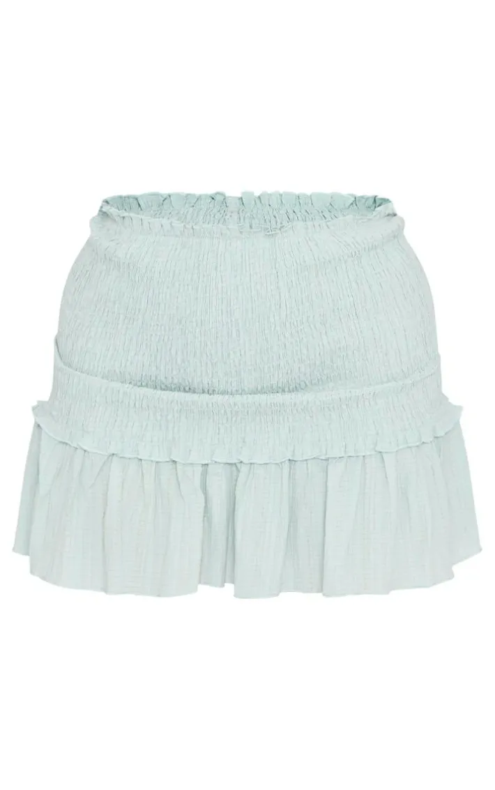 Bring all the dreamy pastel hues to your new season wardrobe with this sage shirred waistband crinkle woven mini skirt. Made from a sage hue crinkle woven material with a shirred waistband and a mini fit, how can you go wrong? Style this mini skirt with a crop top and slip on shoes for an effortless look that won’t go unnoticed.