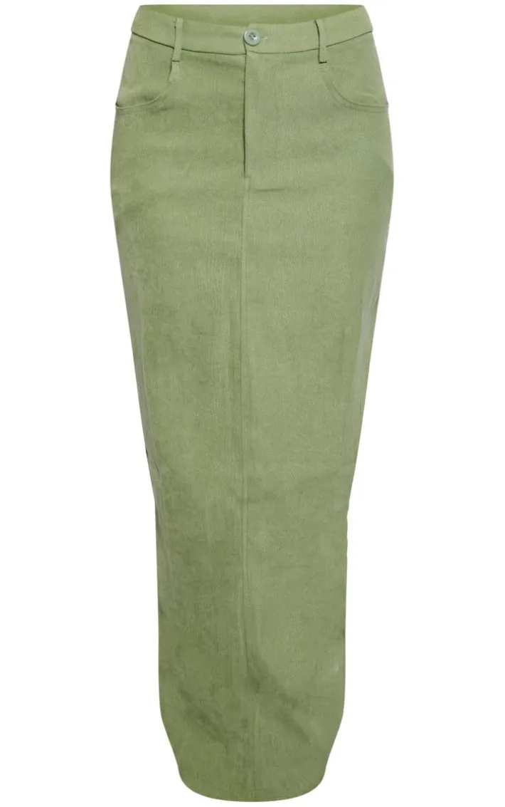 Take your chilled days on in style with this sage soft twill blend split back maxi skirt. Brought to you in a sage soft twill material with a split back and a maxi length, we can’tstop crushing on this maxi skirt. To complete the look pair this with a grey top, bomber jacket and box-fresh kicks. It’s a yes from us.