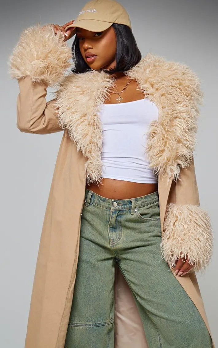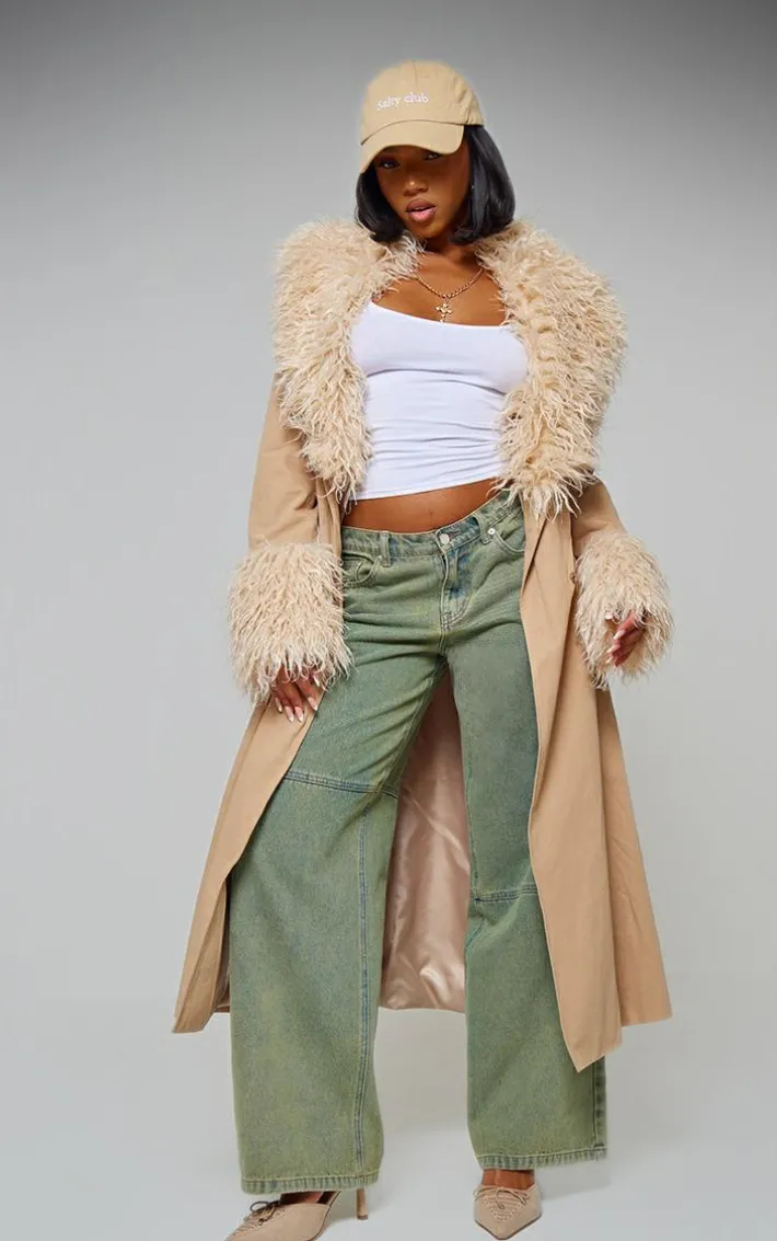 Introducing a must-have item for this season, the sand faux fur contrast collar self tie maxi coat. We know you’ll love this maxi coat for its cosy faux fur trim and front tie design that can be dressed up or down. Finish off the look with low rise jeans, a chic court heel, cap and statement necklace to have all eyes on you.