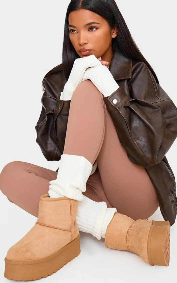 Nail all the major trends this season with these sand faux suede cleated ankle platform boots. Brought to you in a sand faux suede material with a platform design, these ankle boots are at the top of our hitlist. Perfect for those cosy ‘fits this season, these boots are a definite must-have.
