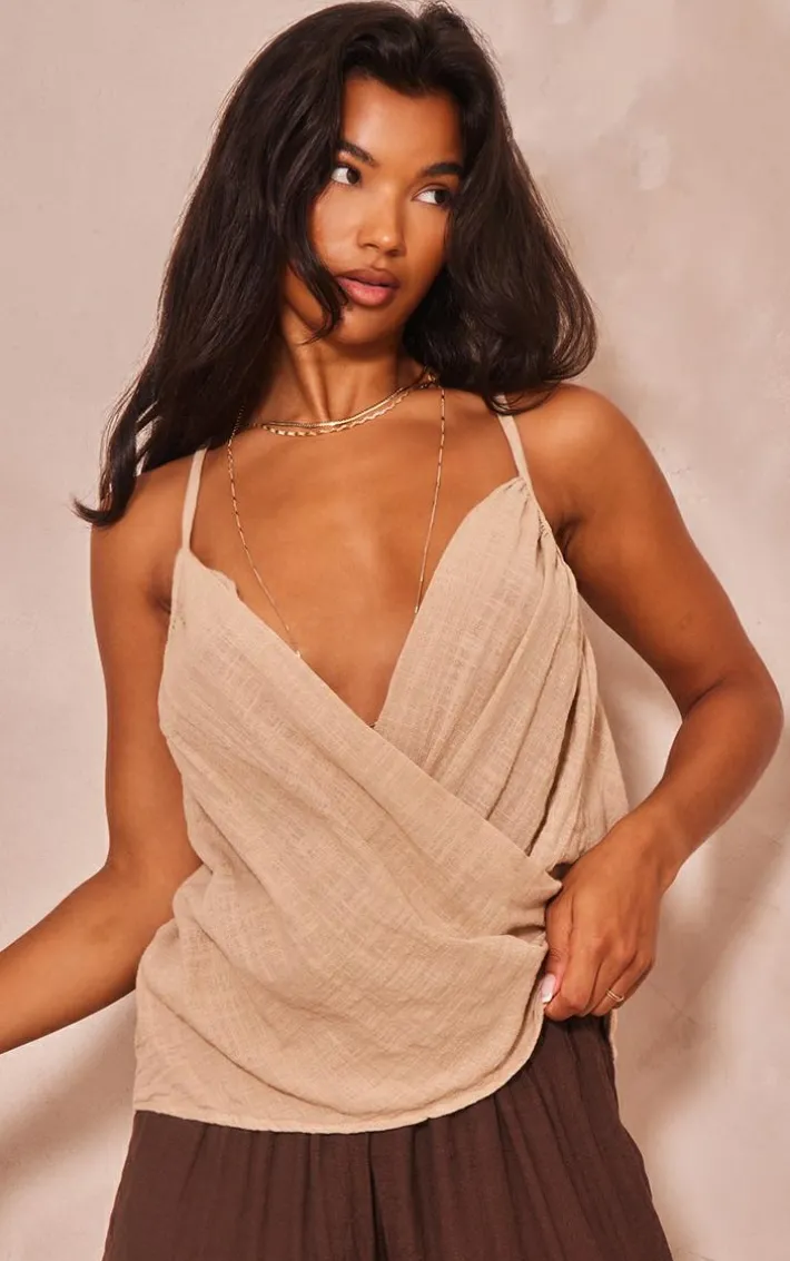 Calling all our neutral-loving dolls to not miss out on this sand linen look cowl drape cami long top. With a sand linen look material, a cowl neckline and a drape detail, how could you say no? This long top needs instantly adding to your basket and you are sure to take your outfit of the day to new heights. Style effortlessly with brown pants, chunky sandals, and gold accessories for a vibe that won’t go unnoticed.