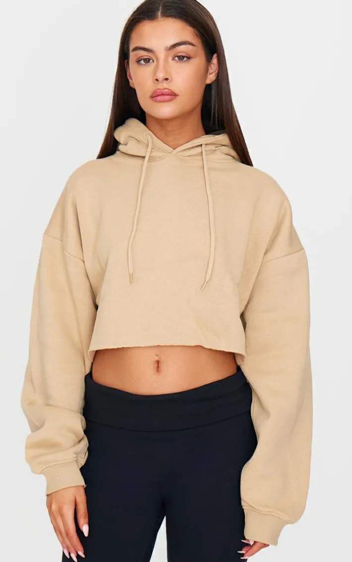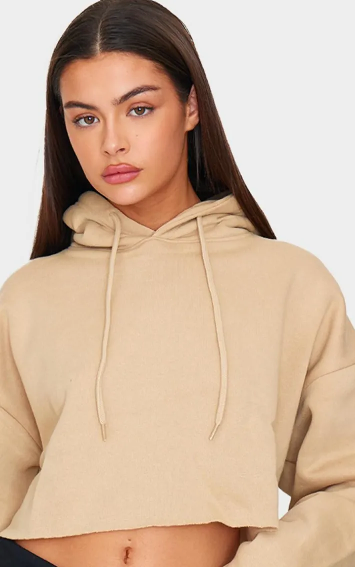 Add some neutral tones to your off-duty wardrobe with this sand oversized fit cropped sweat hoodie. Brought to you a sand hue material that is so on trend right now, with an oversized fit for some chilled vibes and a drawstring hood, what’s not to love? Team with fitted comfy sweatpants and your fave sneakers for a seriously relaxed and cool look.