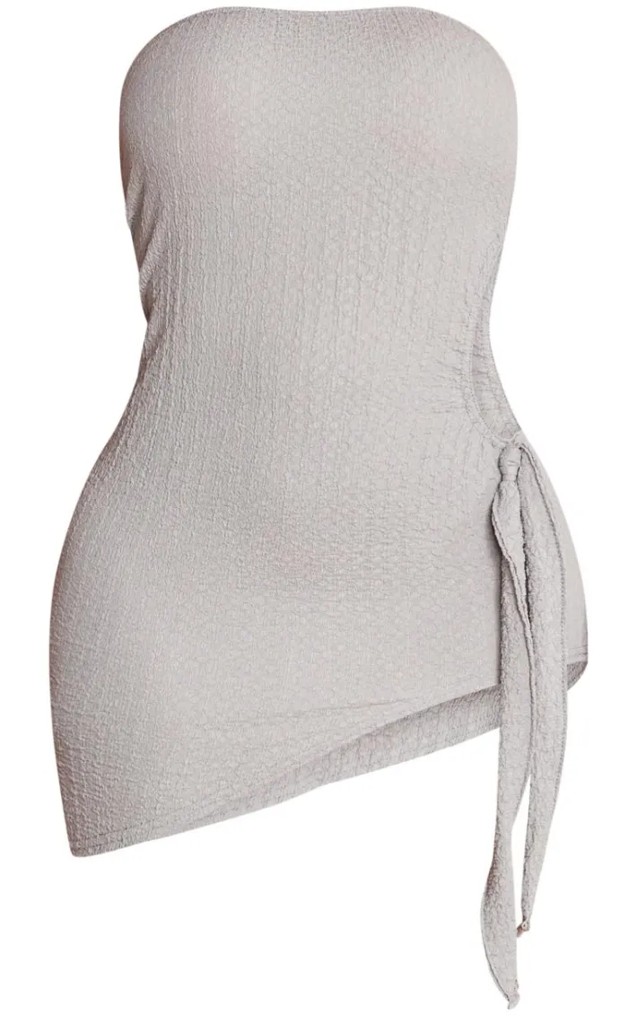 Show off your shape with this shape ash grey textured tie detail bandeau dress. Brought to you in an ash grey textured material with a tie detail, what more could you want? This bandeau dress is the perfect addition to any look. Team with your fave heels and accessories for a fool proof finish.