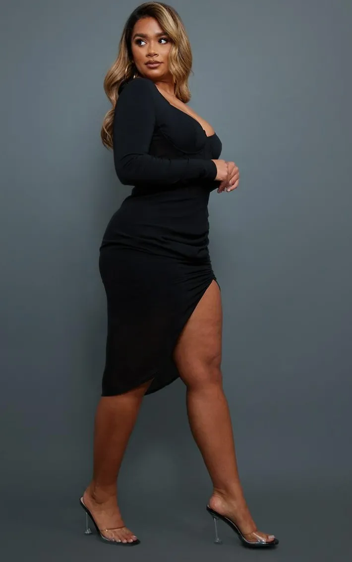 Get that effortlessly chilled vibe on-point with this dress. Featuring a black hue material with corset detail and a midi length. Just add some clear heels to finish off this fiercely feminine look.