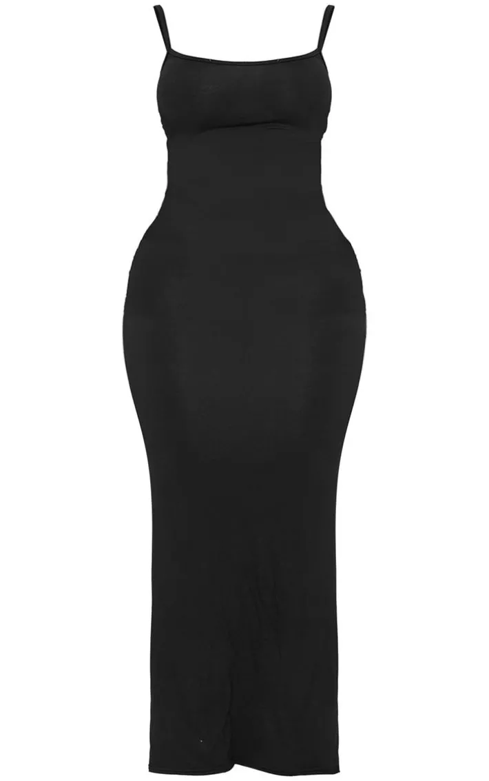 This dress is here to make a statement. Featuring a black jersey material with a strappy design and maxi length, we are obsessed. Pair with slip on heels and gold accessories to instantly elevate the look.
