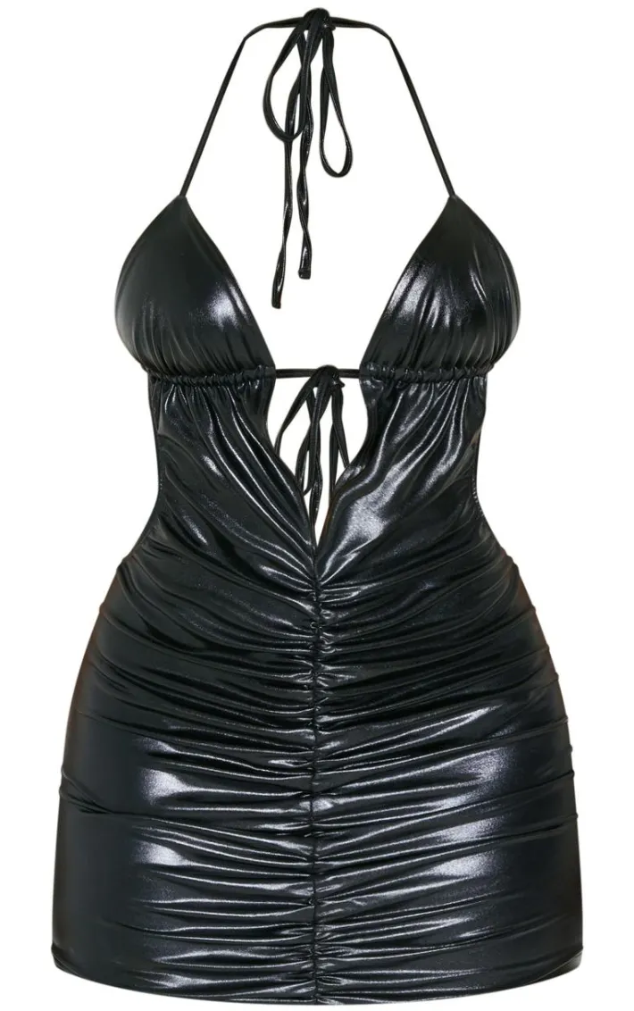 Your wardrobe is calling out for this shape black ruched middle PVC dress. Brought to you in a black PVC material with a ruched middle design that will have you showing off your shape in all the right places. Team with your highest heels a a pair of gold hoops for a look like no other.