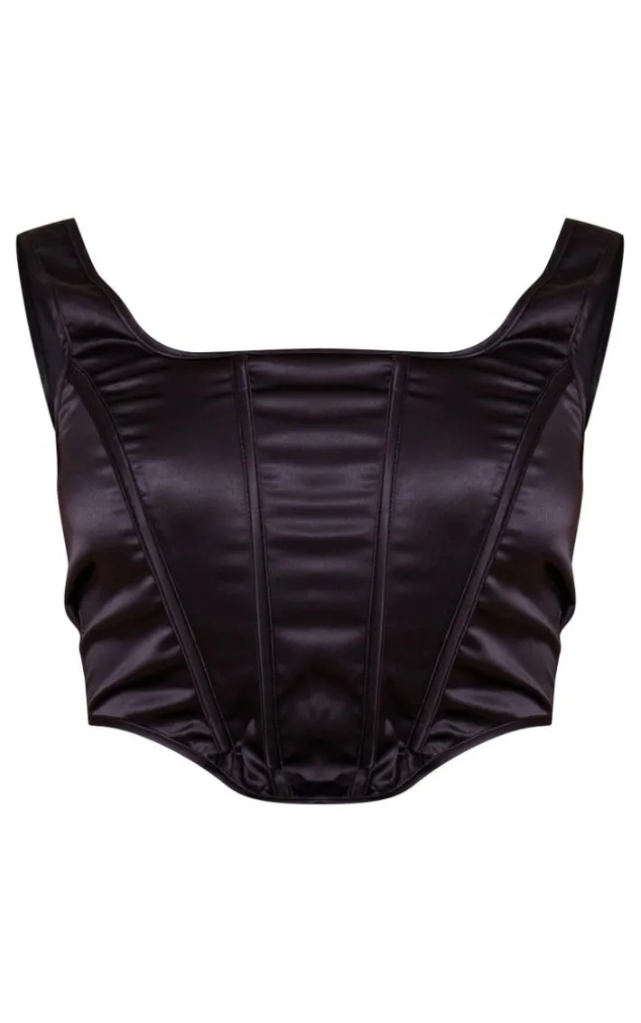Get ready to have all eyes on you with this shape black satin structured corset. This corset is brought to you in a black satin material with a dipped hem and a zip-up back, whatÂ’s not to love? With itÂ’s structured fit youÂ’ll sure to earn all the likes with this dreamy piece. Finish off the look by pairing this with the matching skirt, high heels and accessories. ItÂ’s a yes from us.