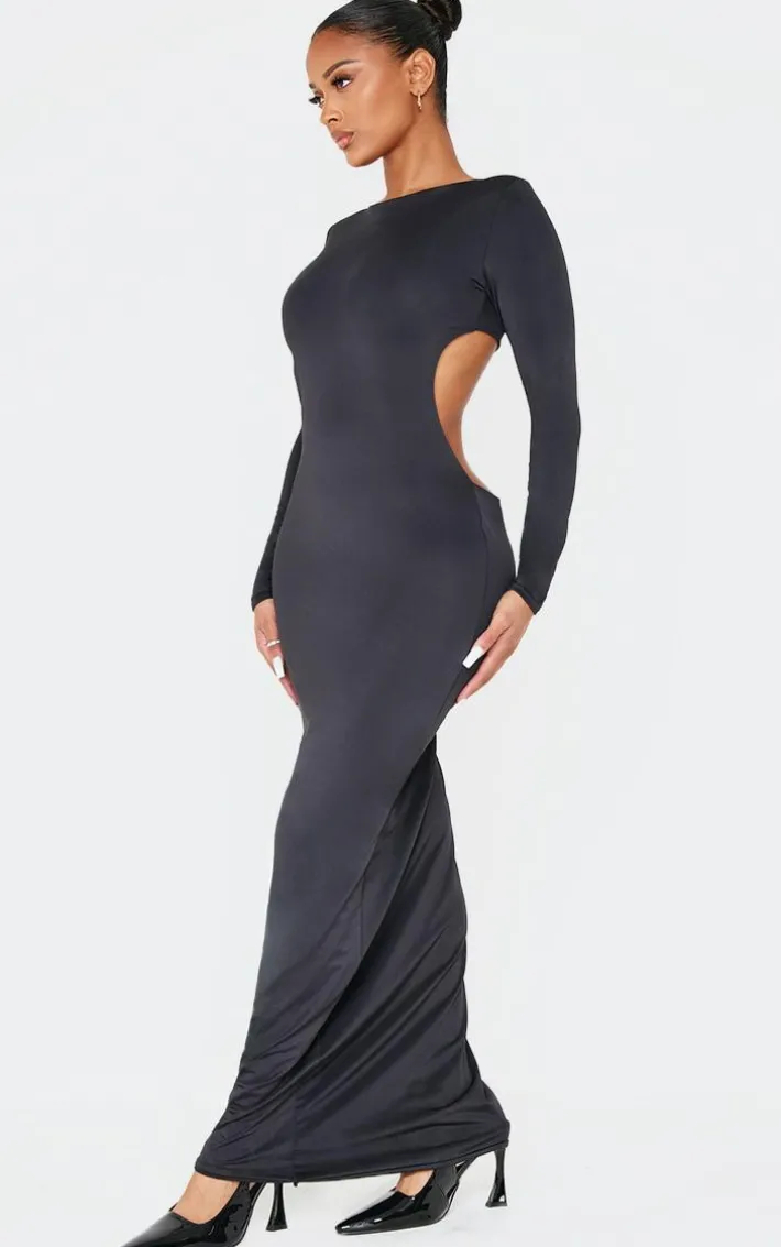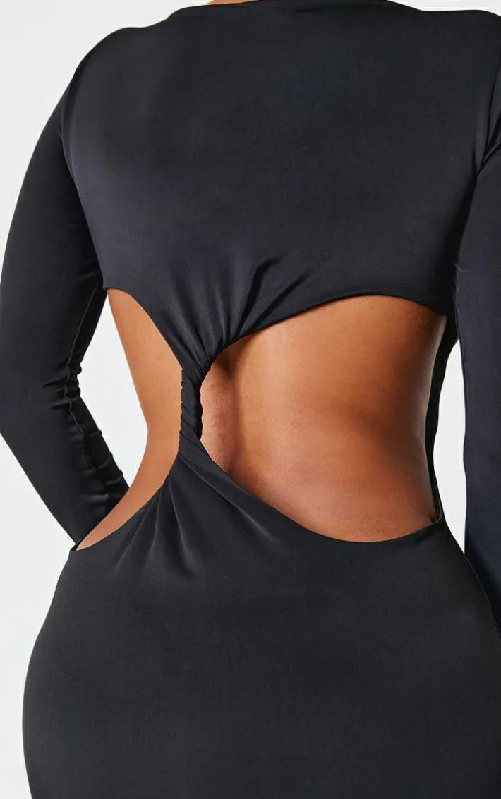 We can’t get enough of this shape black sculpt long sleeve twist open back maxi dress for an elevated weekend ‘fit. Brought to you in a versatile black shade, with a sculpt finish, twist detail and open back design, how can you resist? We know you’re going to look fierce. Pair with your best heels and accessories for an unbeatable vibe.