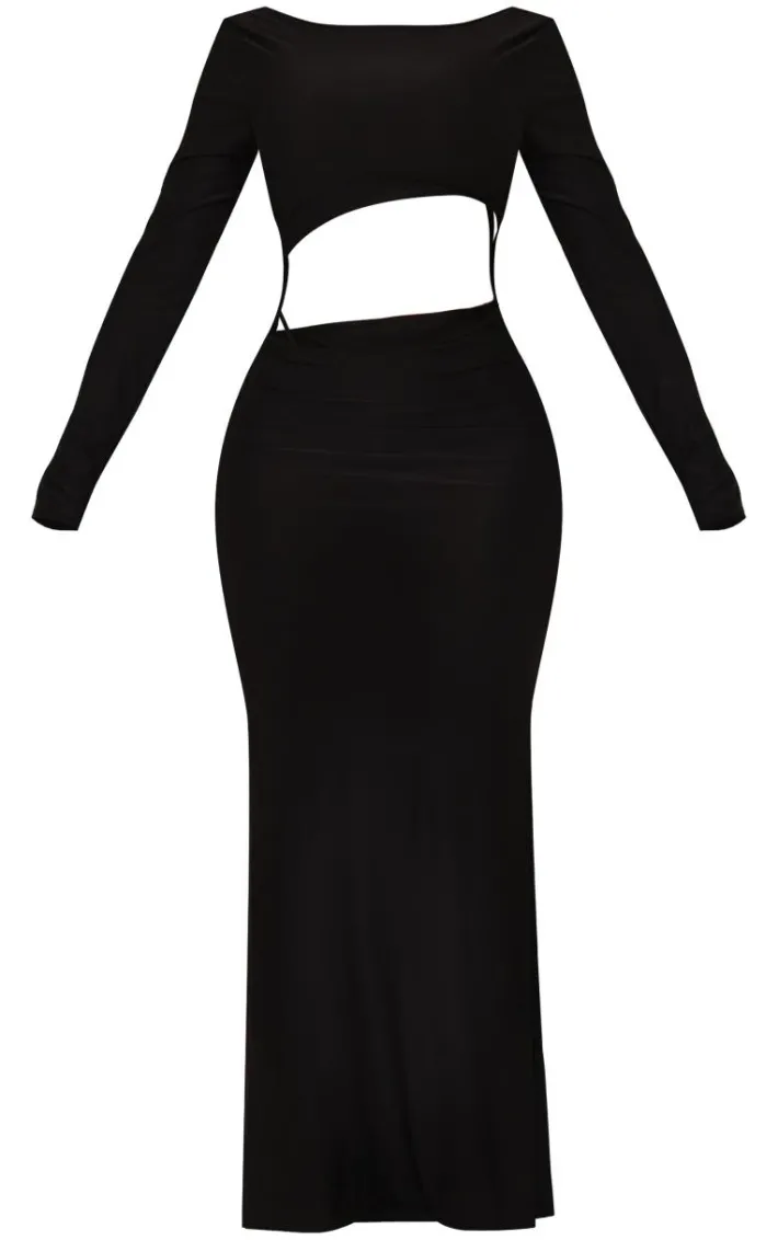 Make a statement with this shape black slinky long sleeve cut out strap detail maxi dress. Brought to you in a black slinky material with a long sleeve design and a cut out strap detail, we are seriously obsessed. Team this unreal maxi dress with your fave accessories and a pair of heels to elevate the look to new heights.