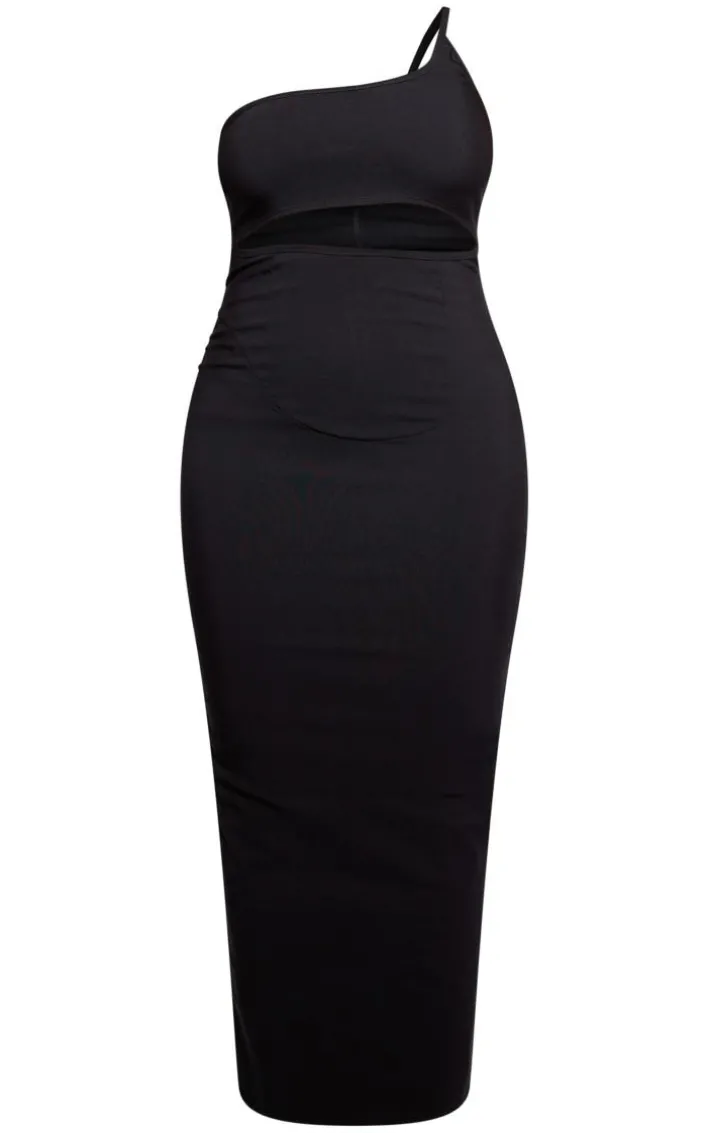 Live in the moment with this luxe dress. Featuring a black stretch woven material with a one-shoulder design, a cutout design, a midaxi length and a flattering fit, we are in love. Wear with high heels, gold accessories and a mini bag for a confidence-enhancing finish.