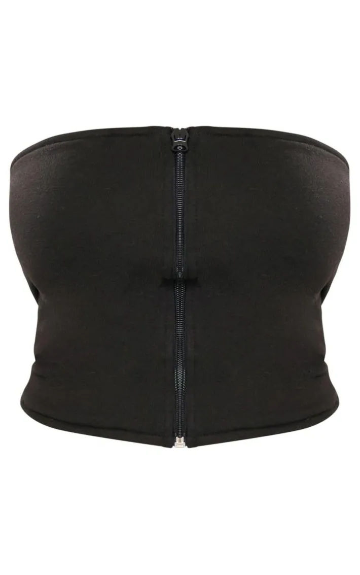 Be on trend this season with this shape black sweat seam detail bandeau corset. Brought to you in a black sweat material with seam detailing and a bandeau design, you will bring all the edge to your outfit of the day, This corset is perfect for those on the go days. Team with the matching sweatpants, high heels and accessories to be the Center of attention wherever you step foot this season.