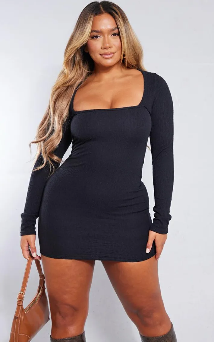Getr ready to earn all the likes with this little black dress. Featuring a black textured material with a square neck, long sleeves and a bodycon fit, we are in love. Team with knee-high boots, a mini bag and gold accessories for a vibe that can’t be matched.