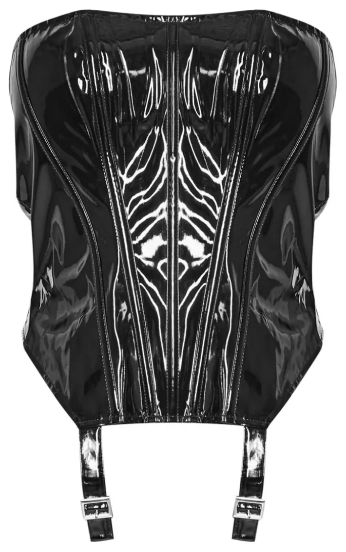 Dare to make a serious style statement in thus shape black vinyl corset. Brought to you in a black hue vinyl material with a figure-worshipping corset fit and zip fastening, how can you not be obsessed? Style this shape corset seamlessly with lace leggings and clear strap heels for a look that is sure to make heads turn wherever you go.