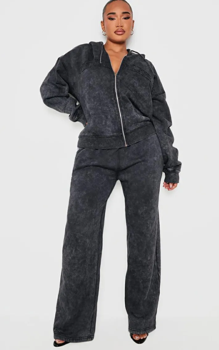 Stay cosy this season in these shape black washed wide leg sweatpants. Brought to you in a black hue sweat material with a washed design and wide leg fit, these sweatpants are all the new you need. For an elevated look, team with the matching zip through hoodie, heels and gold accessories.