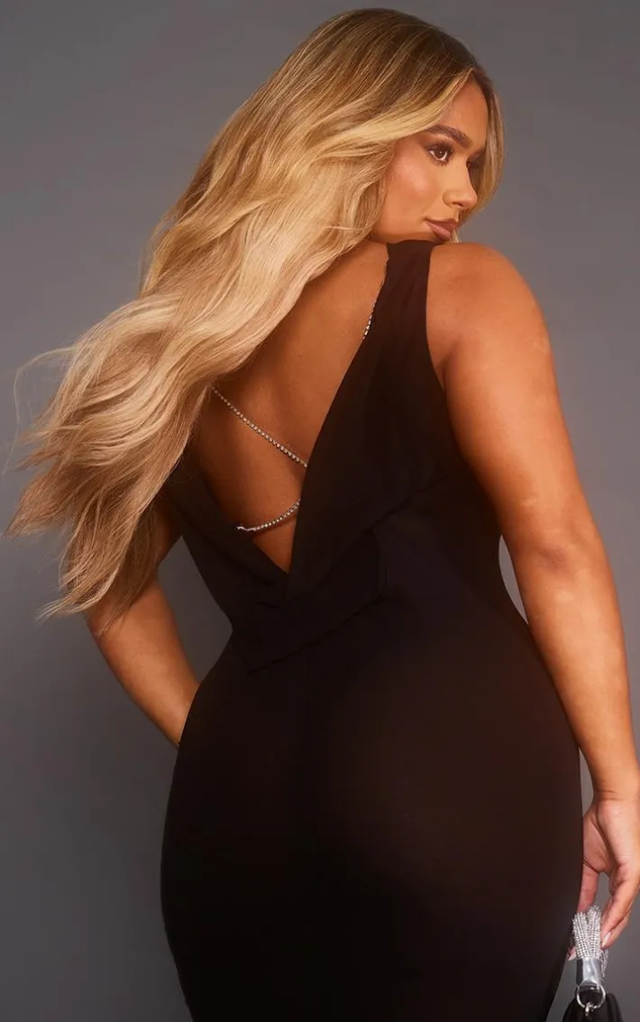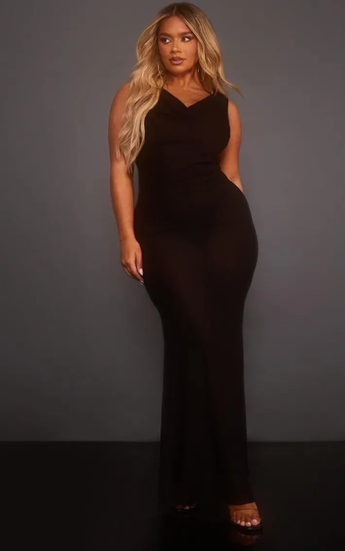 When the dress code calls for effortless chic, this shape black woven cowl neck sequin back maxi dress is always the answer. With a black woven material, a cowl neckline and sequin details, how could you not be in love? This maxi dress is at the top of our hitlist this season and is sure to earn all the compliments. Team with clear heels, a mini bag and gold accessories for a flawless finish.