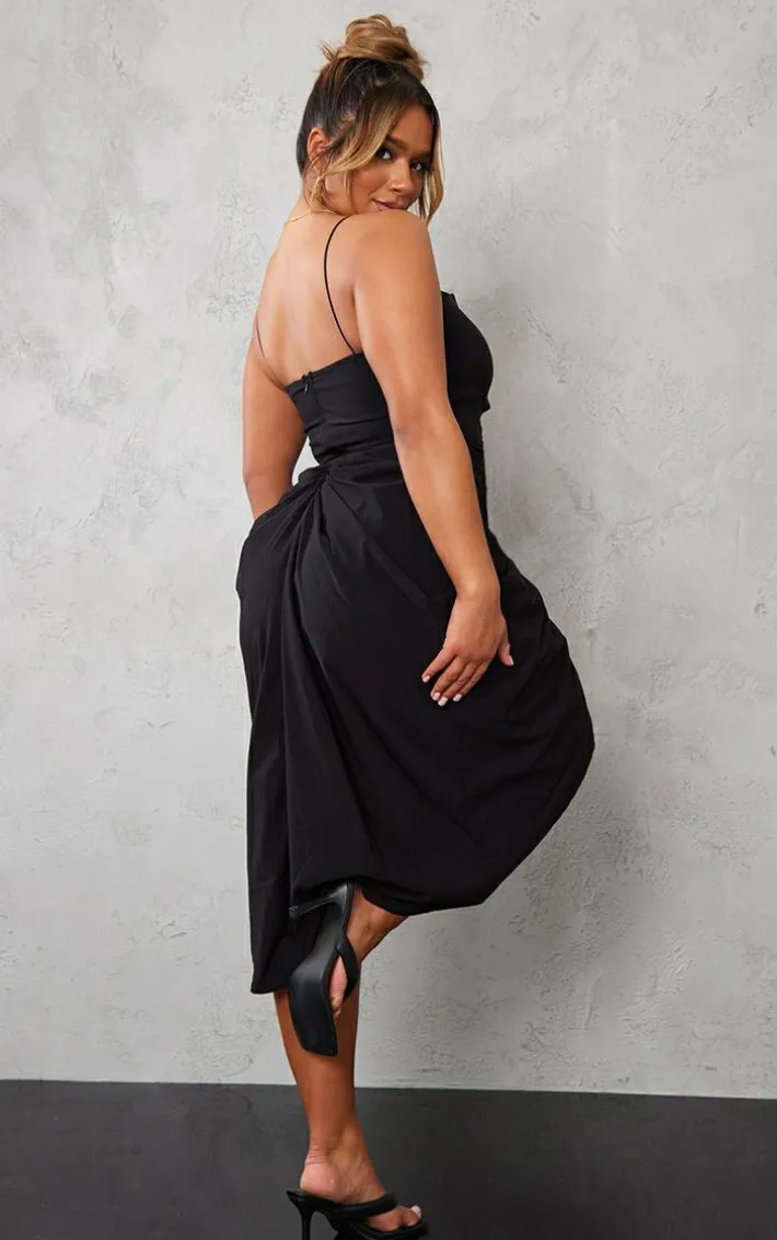 Your weekend outfit is finally sorted with this shape black woven cut out detail ruched midi dress. This dress has got you covered for any of your upcoming occasions. This black dress has a woven design with a cut out detail, we are obsessed. Simply style with some black heels a gold bag and some gold hoops to match to finish off the look that will get you noticed.