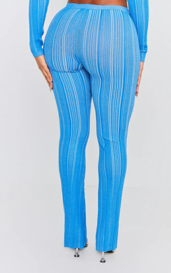 Stay true to blue with these shape blue contrast knit skinny flare pants. These pants are brought to you in a blue knit material with a contrasting design and a skinny flared fit, what’s not to love? These pants are perfect paired with the matching crop top, clear high heels and accessories for a flawless finish.