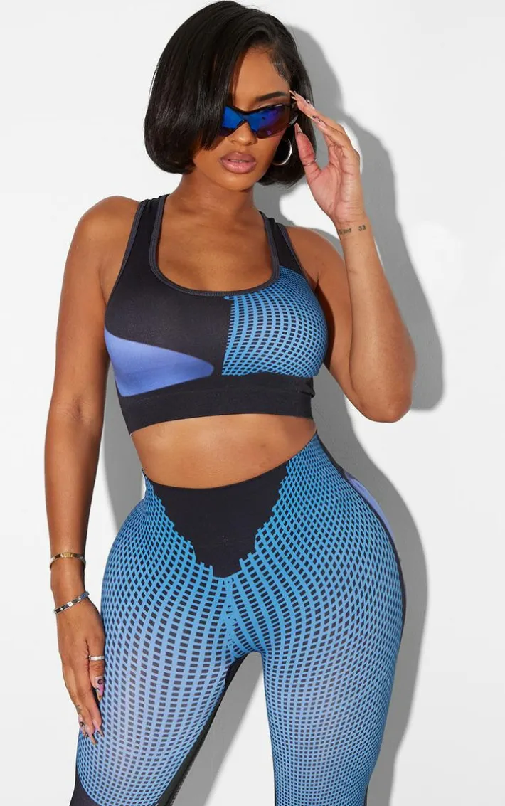 Take your off-duty wardrobe to the next level with this shape blue printed seamless high front crop top. This crop top is brought to you in a blue printed material with a seamless design and a cropped length, what’s not to love? Complete the look by styling this with the matching bottoms, high heels and accessories for a look like no other.