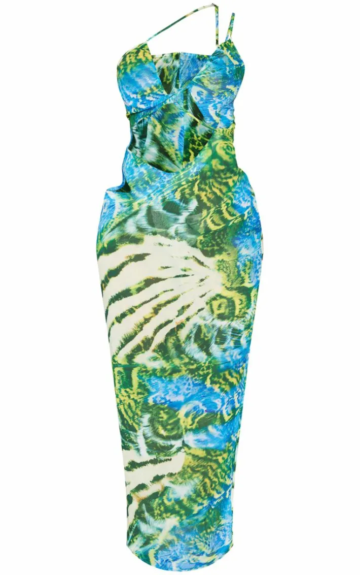 Inject this seasons must-have print into your wardrobe with this shape blue zebra print chiffon strappy cut out maxi dress. Brought to you in a blue zebra print chiffon material with a strappy design and cut out features, how can you resist? It’s official, we’re obsessed. Style this maxi dress with clear heels and green mini bag for a look we’re loving.