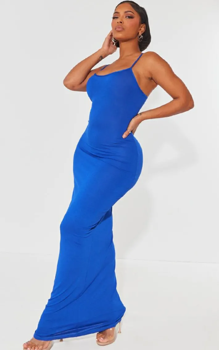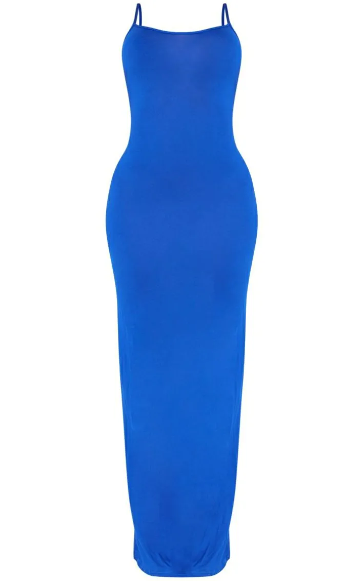 Strand out from the crowd for all the right reasons in this shape bright blue jersey strappy maxi dress. Brought to you in a bright blue jersey material with thin straps and a figure-worshipping fit that is sure to show of your shape in all the right places, how can you go wrong? Style this maxi dress with heels and gold accessories to instantly elevate the look.