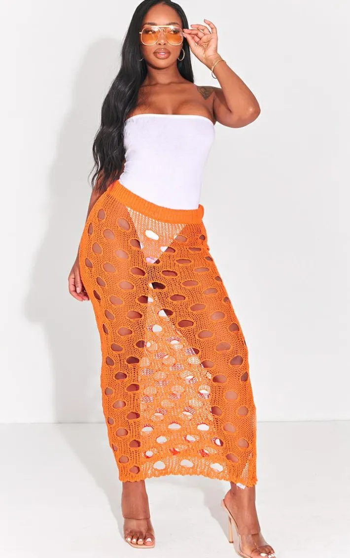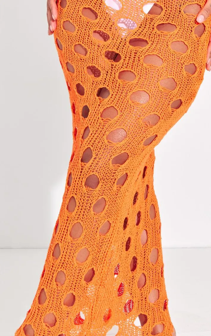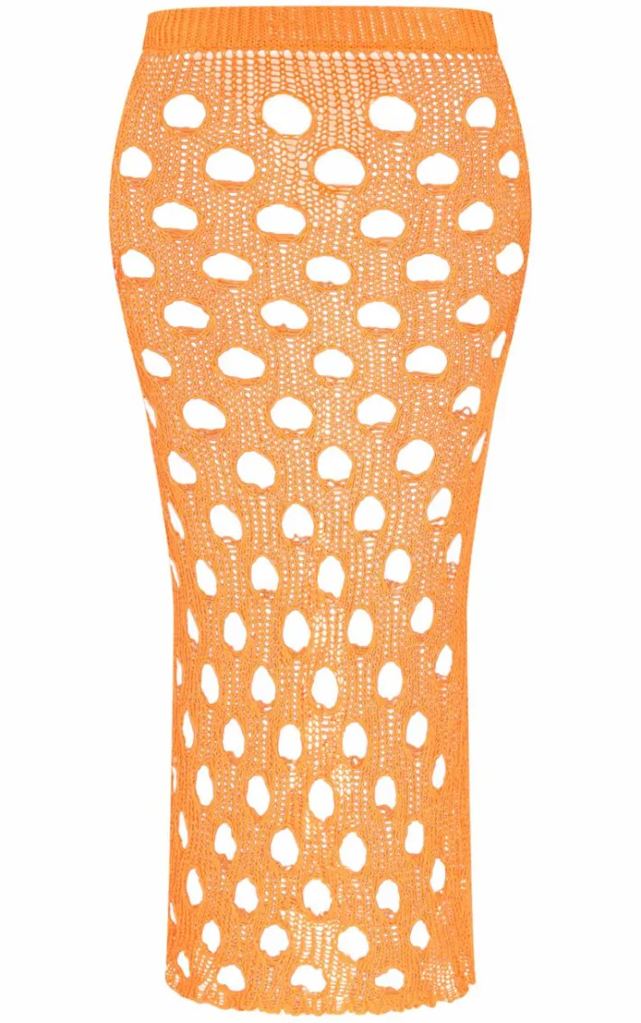 Add some bold and bright hues into your vacay wardrobe with this shape bright orange knit distressed cut out maxi skirt. This maxi skirt is brought to you in a bright orange knit material with distressed detailing, a cut-out design and a maxi length, what’s not to love? Complete the look by styling this with a white bodysuit, high heels and accessories for a flawless finish.