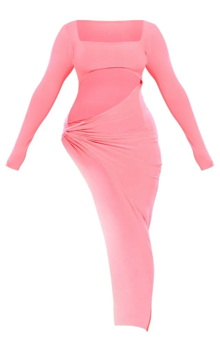 For an Insta worthy look, this shape bright pink slinky cut out knot side midaxi dress is an essential. This dress is brought to you in a bright pink slinky material with a cut out side for a flattering fit you won’t be able to resist. This dreamy midaxi dress has a knot detail that will have you feeling chic all season. Why not team with a pair of clear heels and a statement bag to complete the look everyone is talking about.