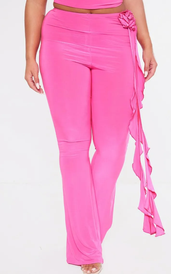 Dare to stand out from the crowd this weekend with these shape bright pink slinky rose high waist flare pants. Brought to you in a bright pink slinky material with a rose detail and a flared fit, what’s not to love? No matter what your plans are this weekend you are sure to impress in these shape pants. Team with the matching top, clear heels and gold accessories for a flawless finish.