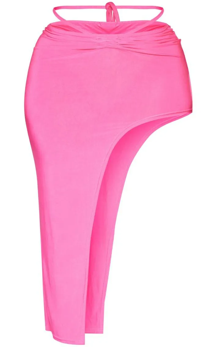 Turn up the heat on your weekend wardrobe with this shape bright pink slinky tie waist asymmetric midi skirt, get ready to have all eyes on you. This shape skirt features a bright pink slinky material with a tie waist design and a figure-worshipping fit, it’s a definite yes from us. Style this midi skirt with the matching top, slip-on heels and a shoulder bag for a statement look we’re loving.