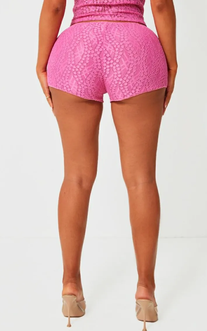 We’re totally in love with this shape bring pink textured woven hot pants for your weekend plans. It is made from a bright pink textured woven material with a high waist and a figure-hugging fit, how could you not be obsessed? These hot pants give you endless styling potential and is bound to give your look that extra chic touch. Style seamlessly with the matching corset, clear heels and gold accessories for a seriously luxe finish.