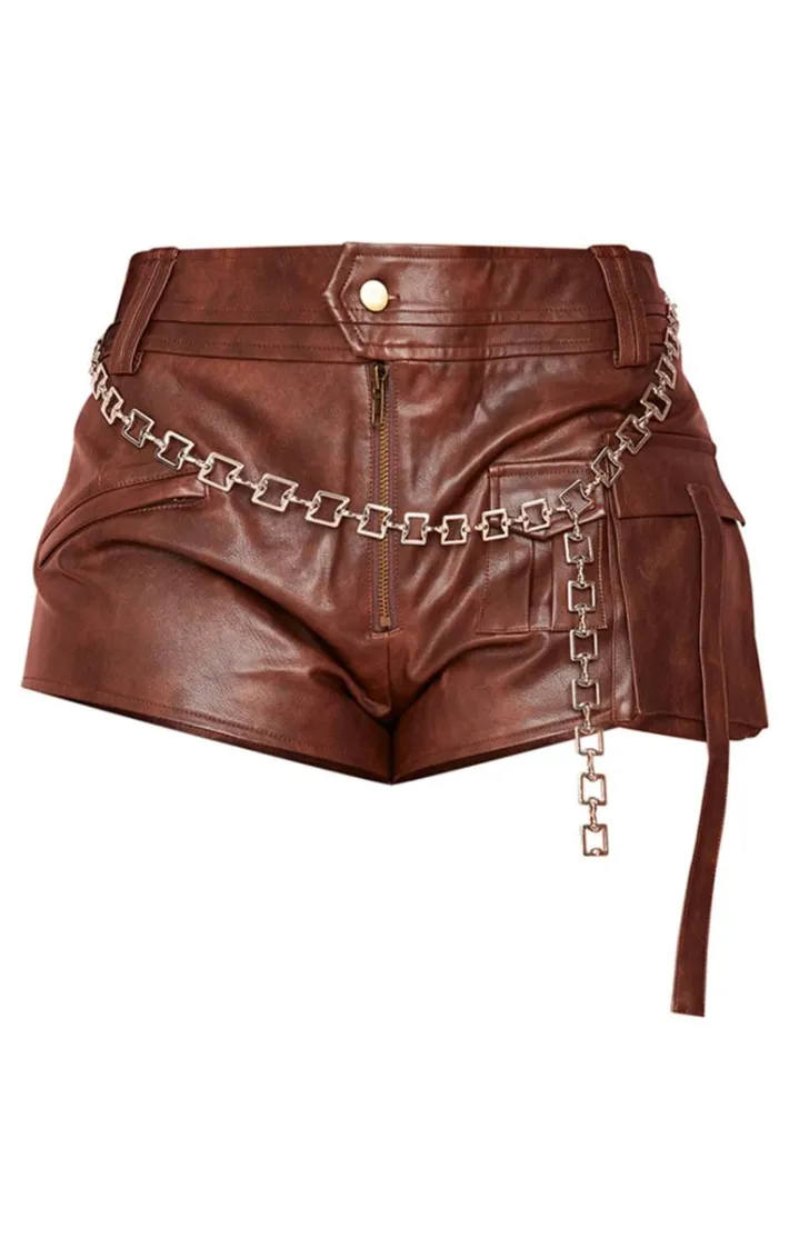 We’re totally in love with these shape brown faux leather belt detail hot pants for your weekend plans. They are made from a brown faux leather material with a belt design, how could you not be obsessed? These gives you endless styling potential and is bound to give your look that extra chic touch. Style seamlessly with a black crop top, black heels and gold accessories for a seriously luxe finish.