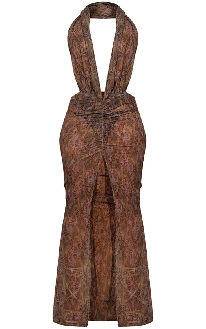 You are guaranteed to stand out from the crowd in this shape brown leopard printed chiffon drape maxi dress. Brought to you in a brown hue chiffon material with a leopard print design, drape detailing and a maxi fit, how can you not be obsessed? Style this maxi dress with tie up heels and gold accessories for a look that will really make a statement on your next occasion.