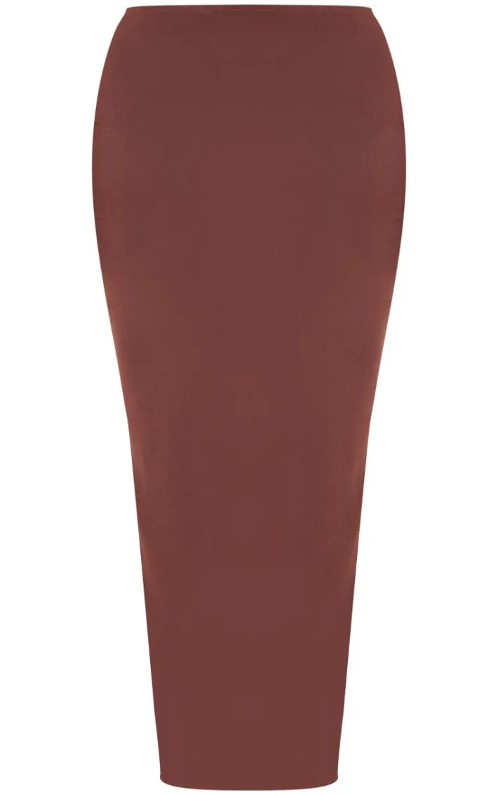 You need this figure-hugging shape brown sculpted low rise maxi skirt in your collection. Its brown hue fabric, sculpted fit and low rise waist will have you looking absolutely unreal. We’re obsessed. You can’t go wrong when styled with the matching brown top, your go-to heels and accessories.