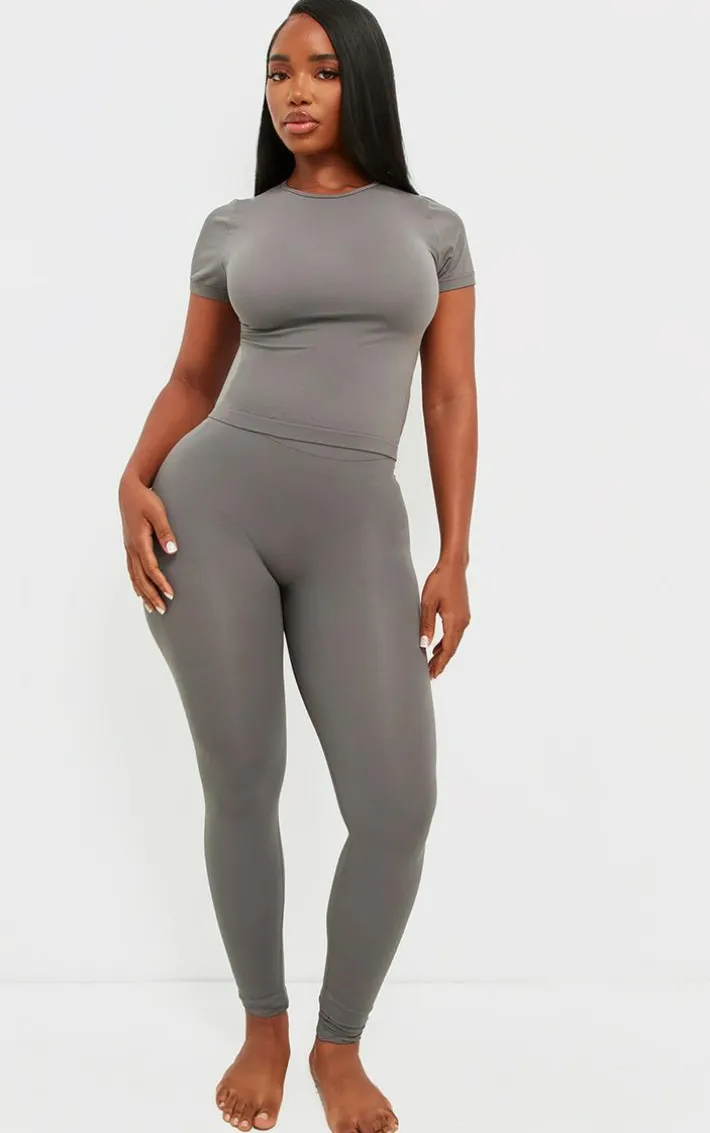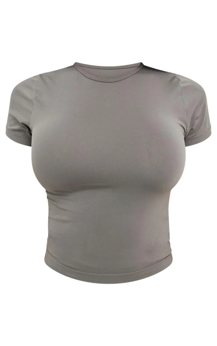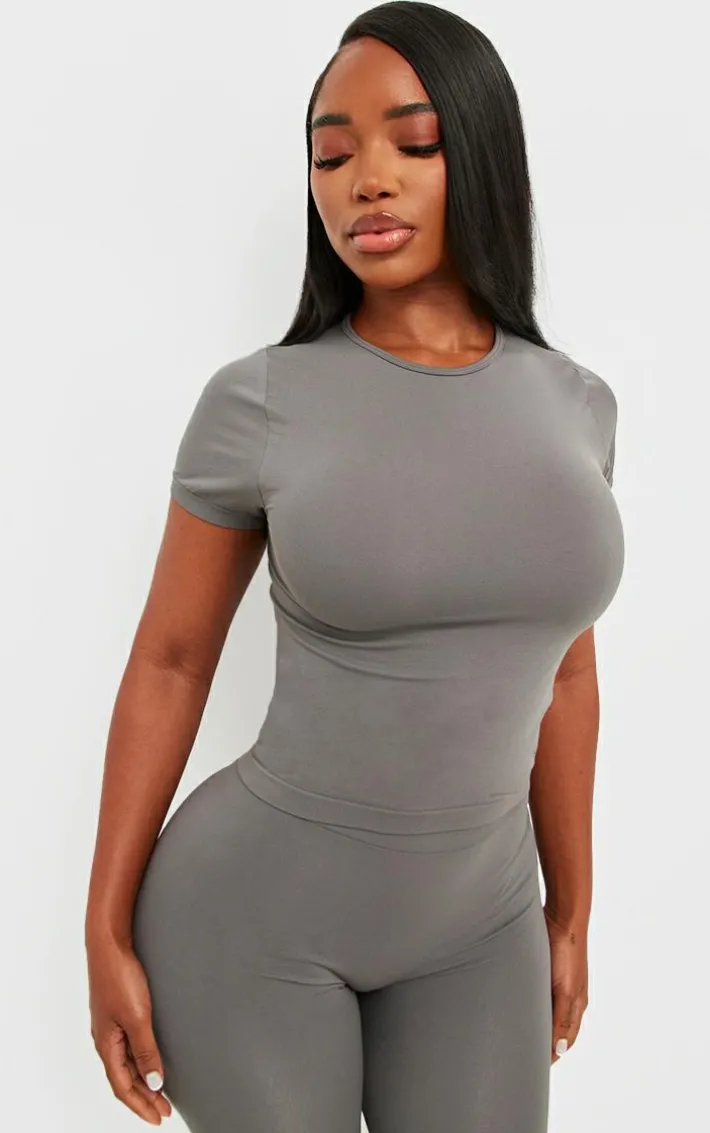 Amp up your casual fit with this shape charcoal stretch seamless short sleeve longline top. Brought to you in a charcoal stretch material with a seamless design and short sleeves, this longline top is a must-have for your wardrobe. Style with the matching leggings, fresh kicks and your fave accessories for an off-duty look we can’t get enough of.