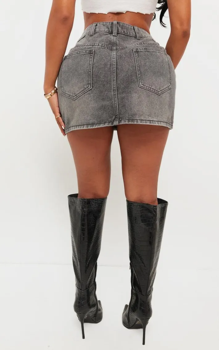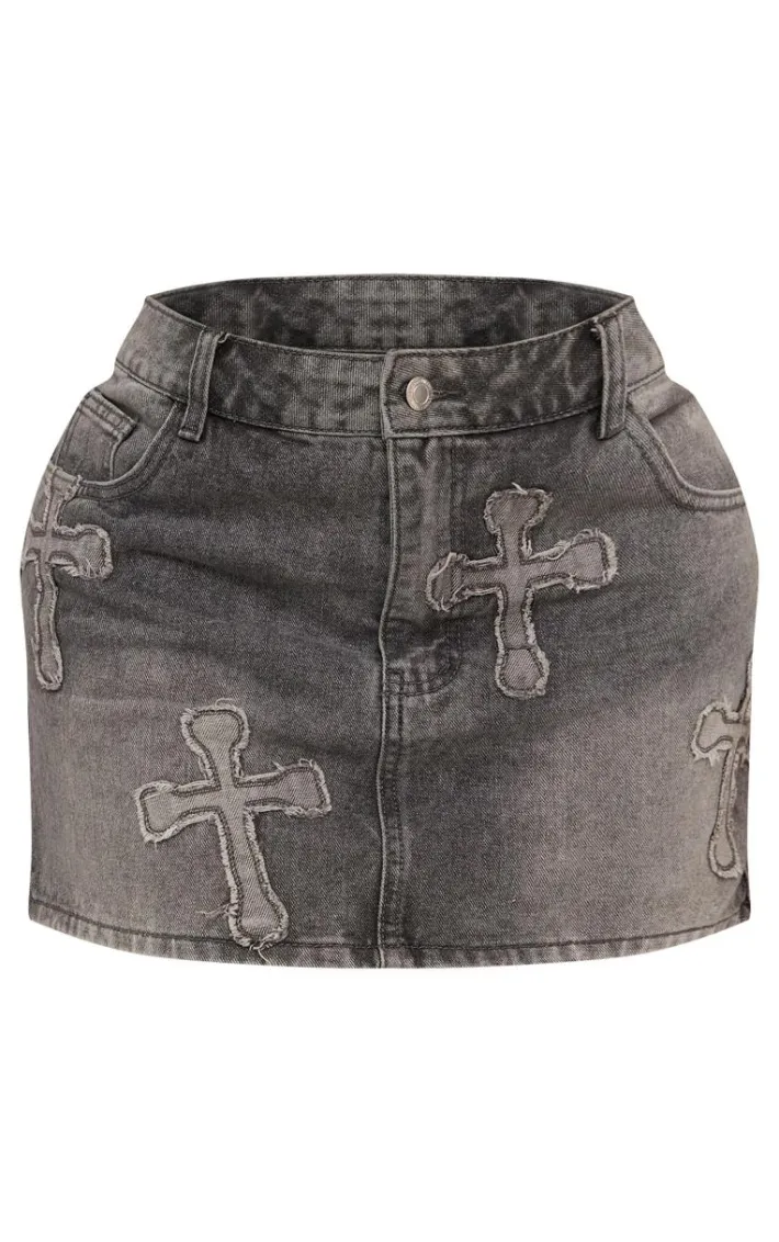 Say hello to your new season staple with this shape washed charcoal washed denim embroidered cross mini skirt. Brought to you in a charcoal washed denim material with an embroidered detail and a cross design design, what more could you want? This unreal mini skirt will be showing off your shape in all the right places. What more could you want ? Style with some of your fave heels, gold hoops and a crop top for a look that have you being the topic of everyone’s conversation.
