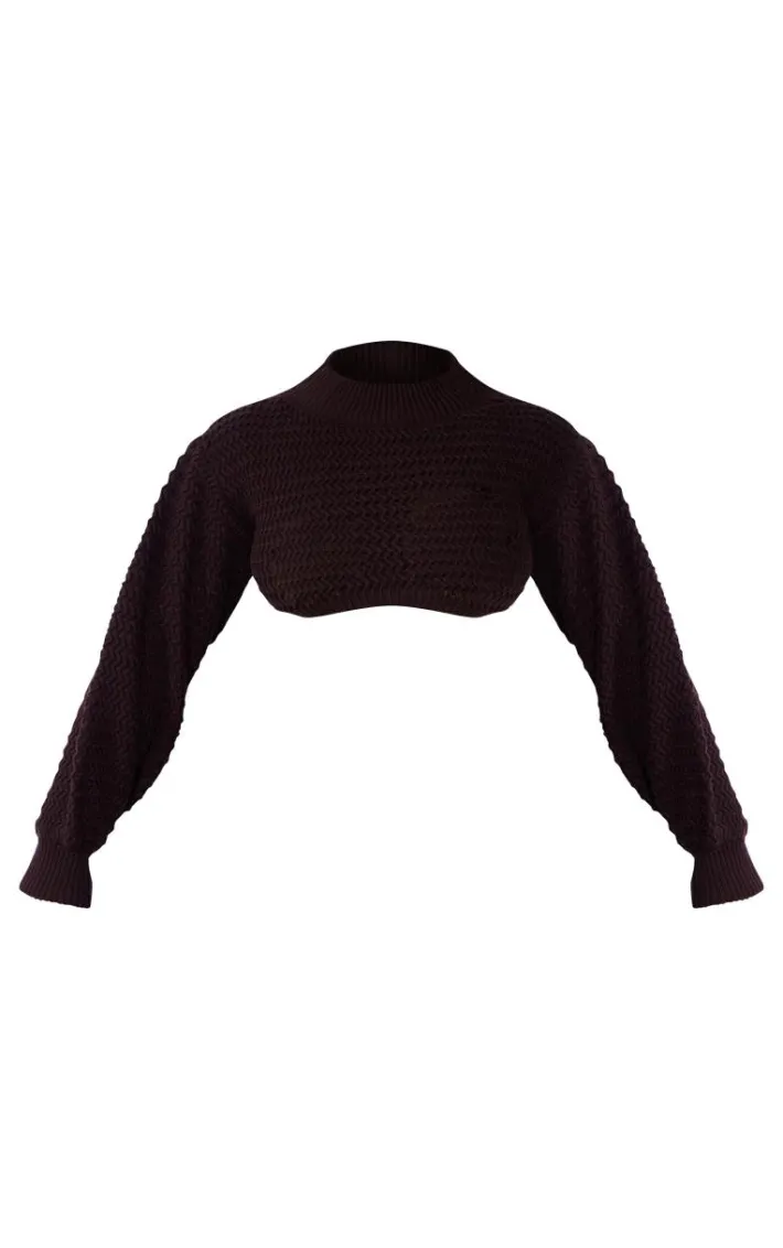 Upgrade your new season wardrobe with this top. Featuring a chocolate brown hue knitted material with long sleeves, a high neck design and a cropped fit. We are loving these styled with the matching skirt and heels for a look that will steal the stares.