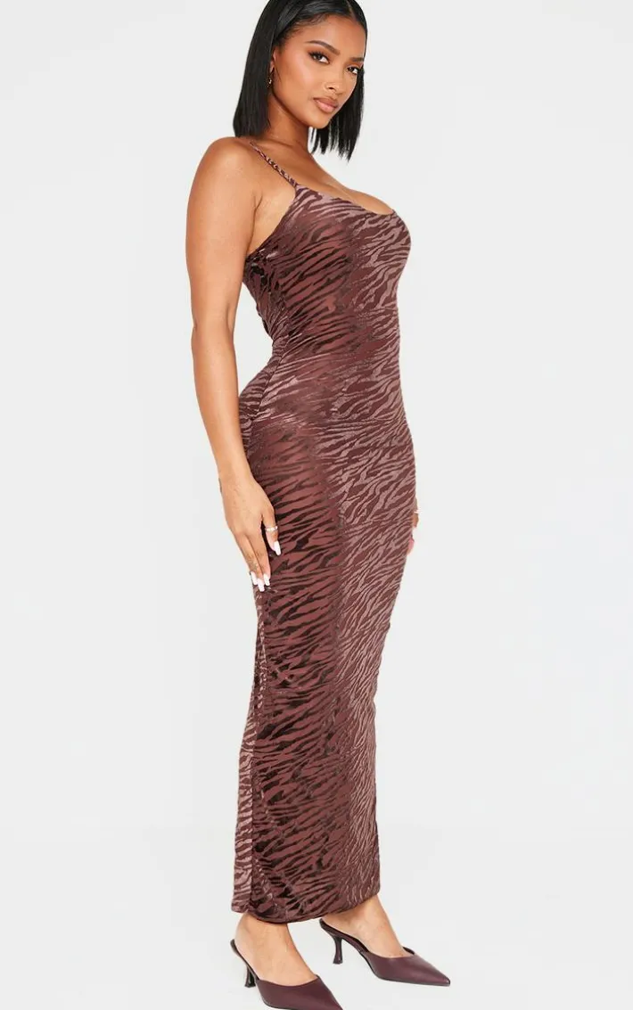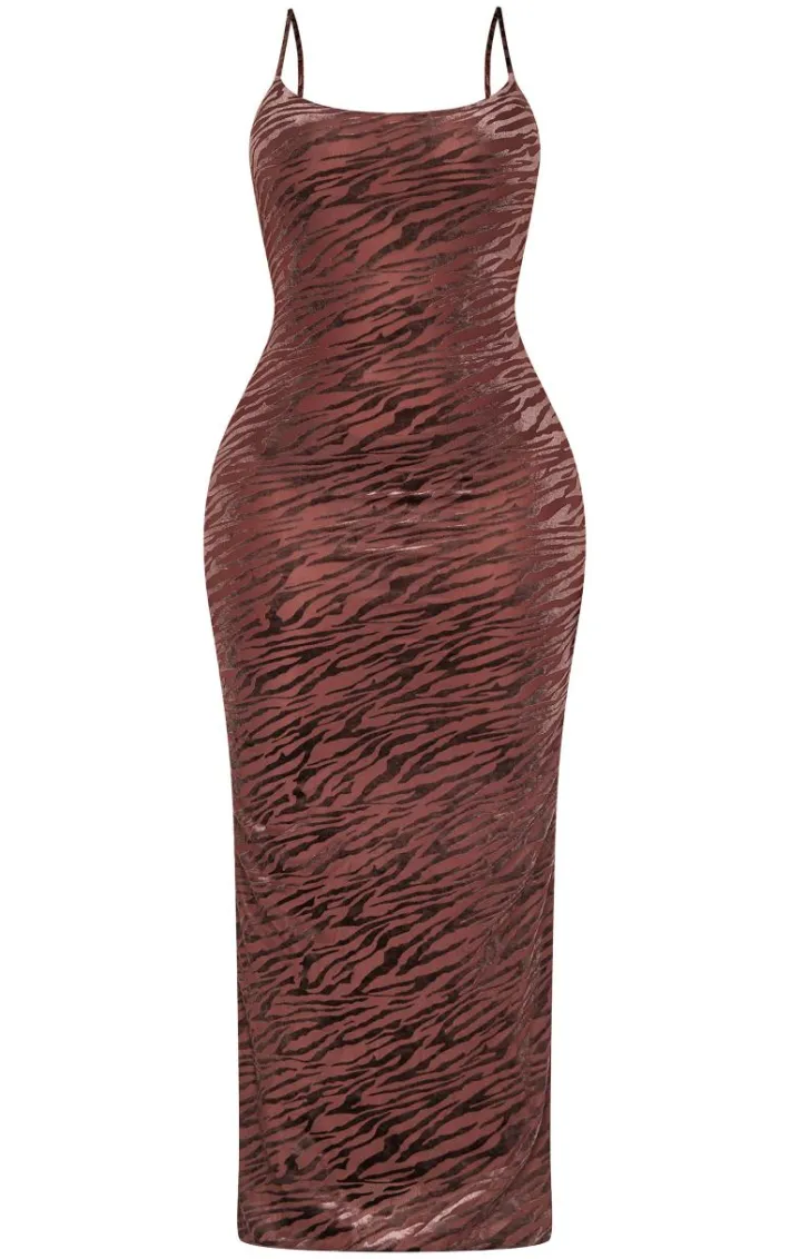 Show off your shape with this shape chocolate zebra devore strappy maxi dress. Brought to you in a chocolate devore material with a zebra design and a strappy detail, what more could you want? This maxi dress is all you need to tap into your chic side. Style with a pair of court heels and your fave gold accessories for a look like no other.