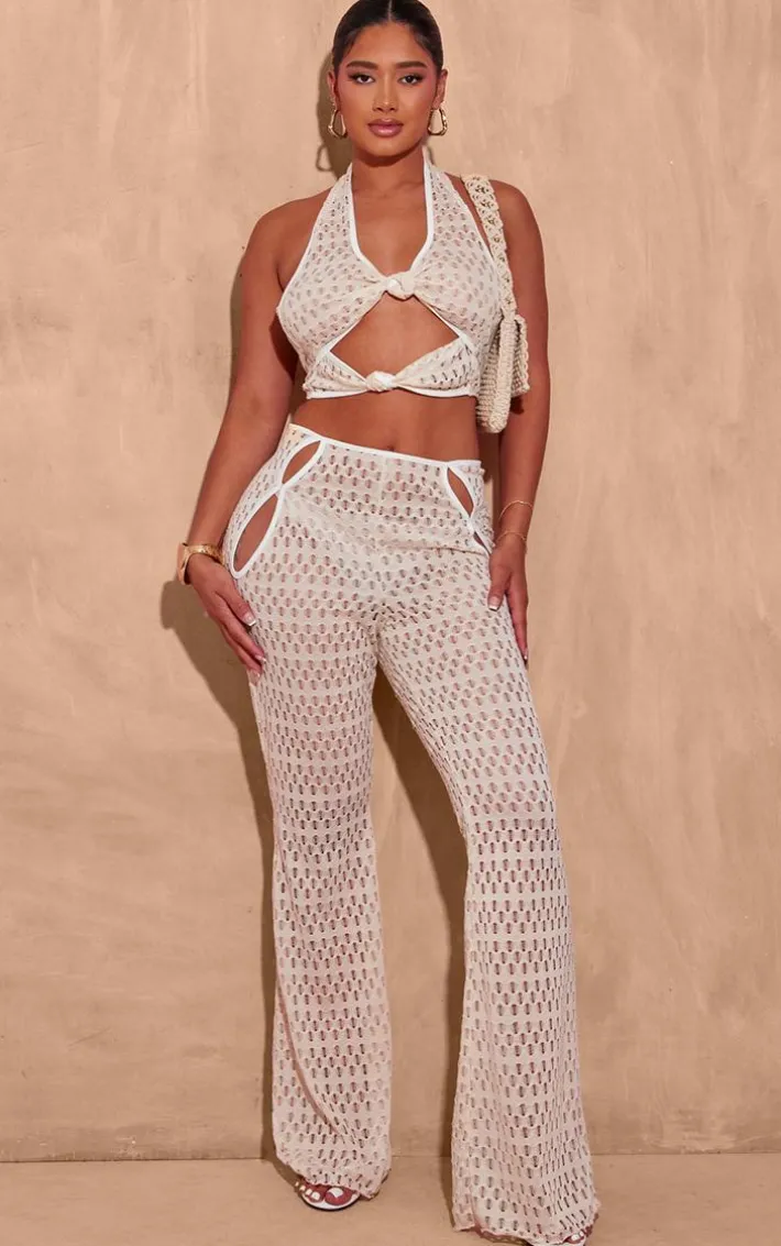 Be on trend this season with these shape cream cut out textured flare pants. Brought to you in a cream textured material with a cut-out design and a flared fit, you will bring all the edge to your outfit of the day. These pants is perfect for those on the go days. Team with the matching top, high heels and accessories to be the Center of attention wherever you step foot this season.